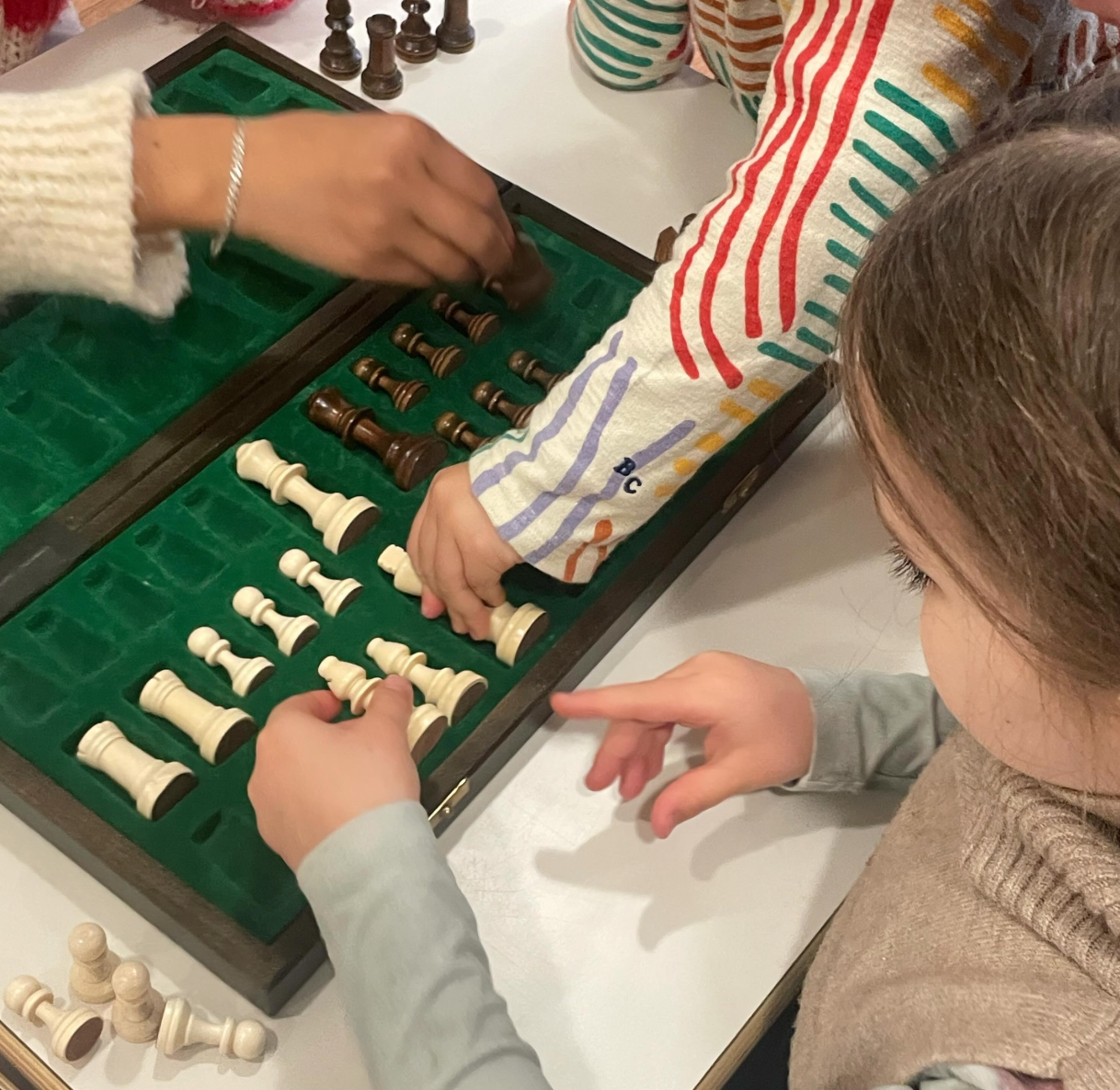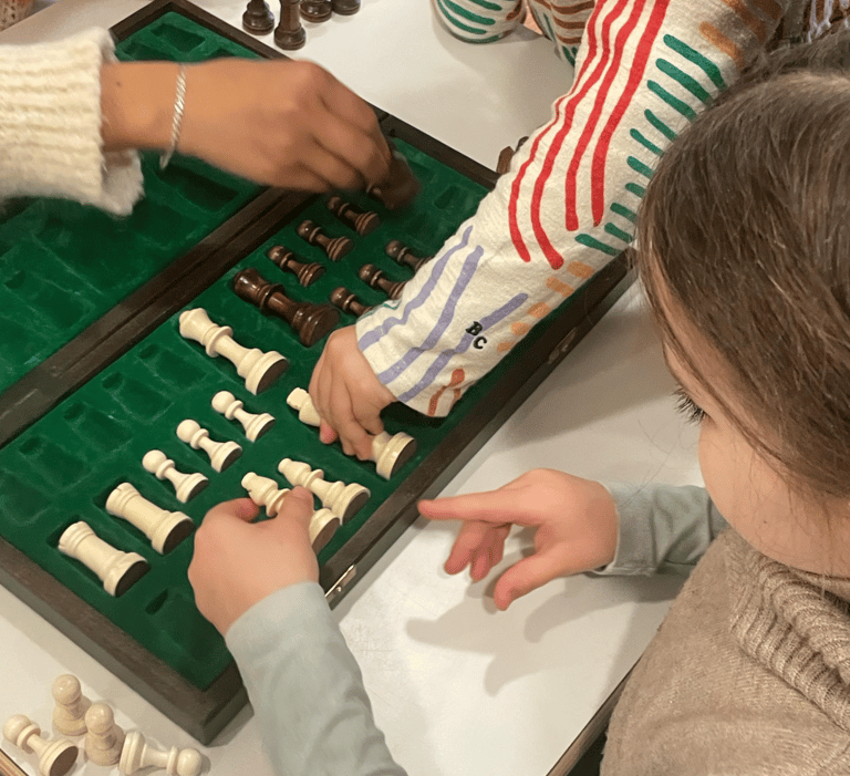 L’initiation au jeu d’échecs développe la logique, la stratégie et la concentration. Les enfants apprennent à réfléchir plusieurs coups en avance, à respecter les règles et à persévérer. Cet atelier stimule autant la réflexion individuelle que le plaisir de jouer avec les autres.