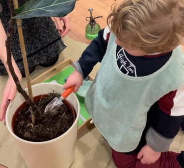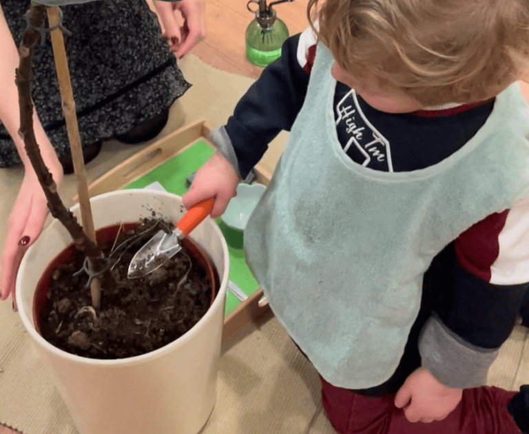 Les enfants prennent soin des plantes, observent la croissance du vivant et profitent chaque jour d’un temps en extérieur. Ces gestes simples éveillent l’émerveillement et construisent une relation respectueuse avec la nature.